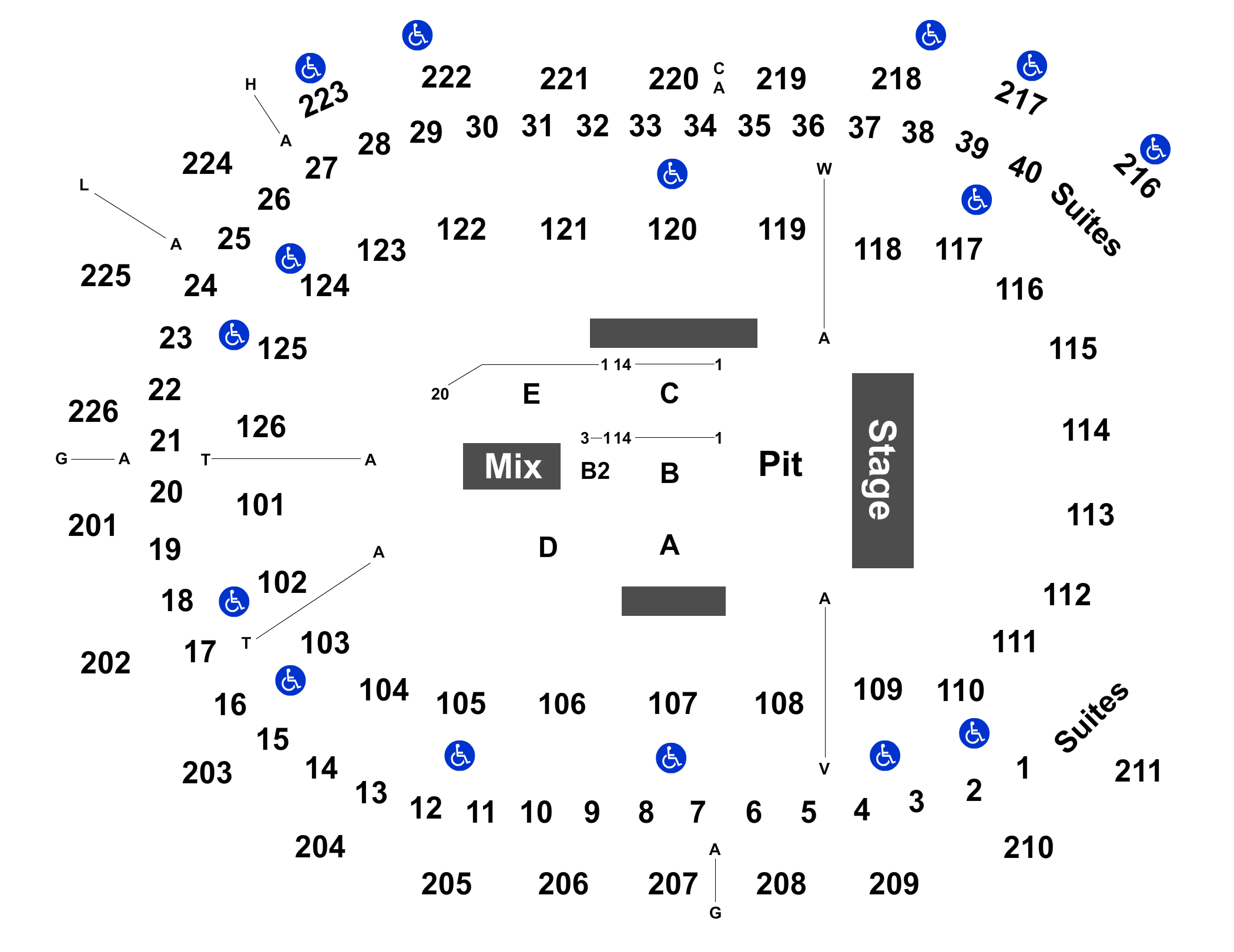 Giant center seating chart details.